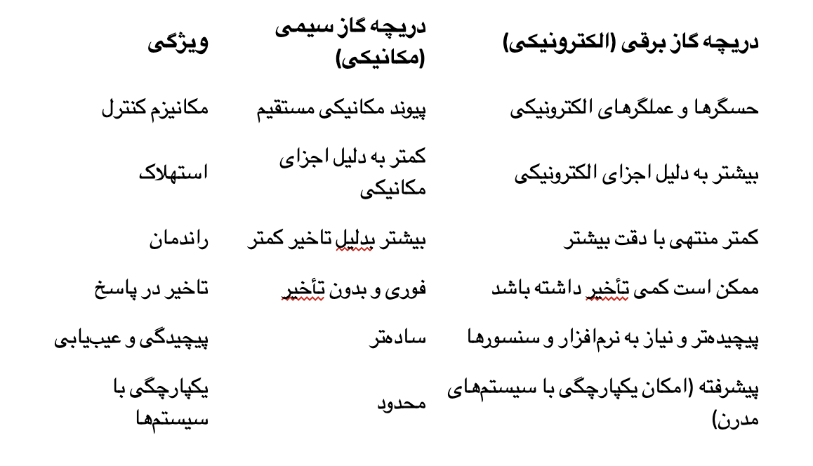 * جدول مقایسه کلی دریچه گاز سیمی و برقی (کلیک کنید)