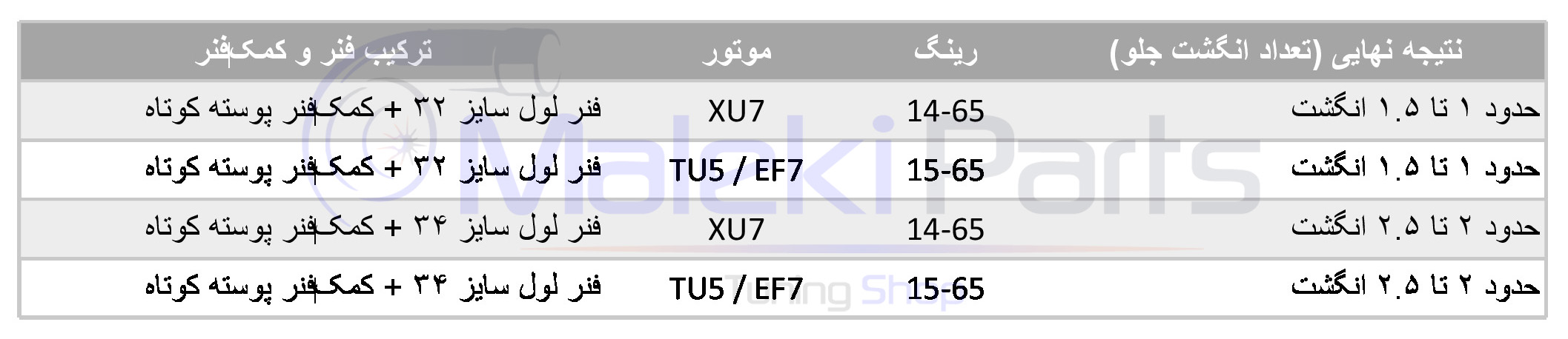 نکته: موتورهای TU5 و EF7 معمولاً وزن بیشتری نسبت به XU7 روی محور جلو وارد میکنند. بنابراین ممکن است با یک ترکیب مشابه، کمی افت بیشتری در ارتفاع ایجاد شود.