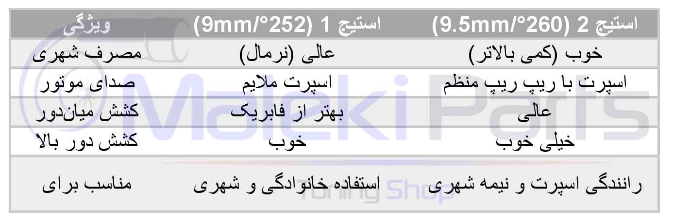 جدول مقایسه استیجهای میلسوپاپ M13 یورو چهار هورنت