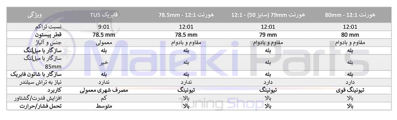 * مشاهده جدول مقایسه پیستون فابریک با پیستون تراکمی TU5 هورنت (کلیک کنید)
