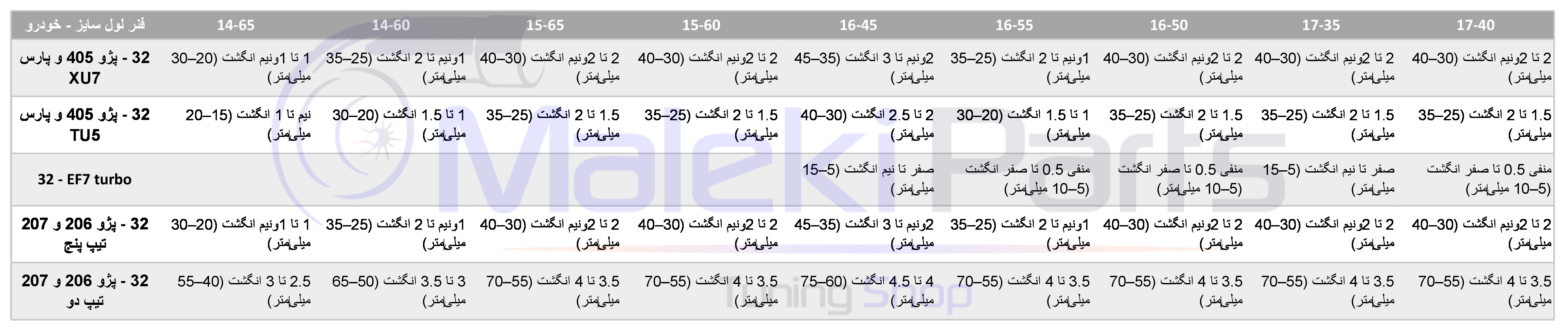 * جهت مشاهده جدول تطبیق کلی تأثیر فنر لول سایز ۳۲ در خودروهای مختلف خانواده پژو کلیک کنید.